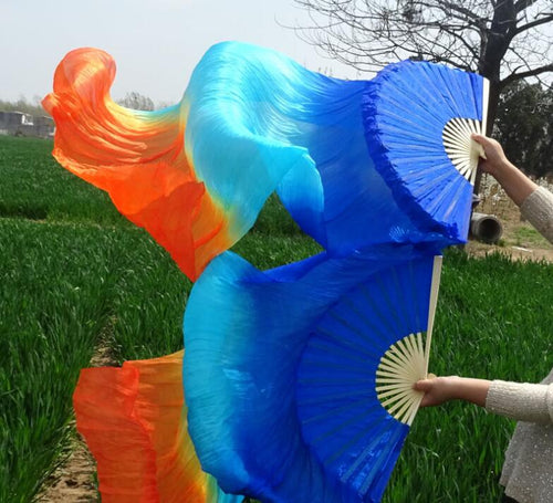 2pieces 50x70inch Large Silk veil fans orange turquoise royal blue Dance Fan Burlesque Dance fan Bridal Bouquet